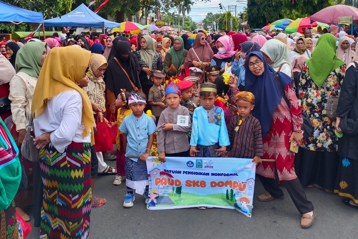 Dompu, 30 April 2025 — Ribuan peserta dari jenjang PAUD dan SD se-Kabupaten Dompu memadati ruas Jalan Jend. Sudirman dalam rangka memeriahkan Karnaval Hardiknas 2025, sebuah kegiatan kolaboratif dalam memperingati Hari Pendidikan Nasional yang jatuh pada tanggal 2 Mei.