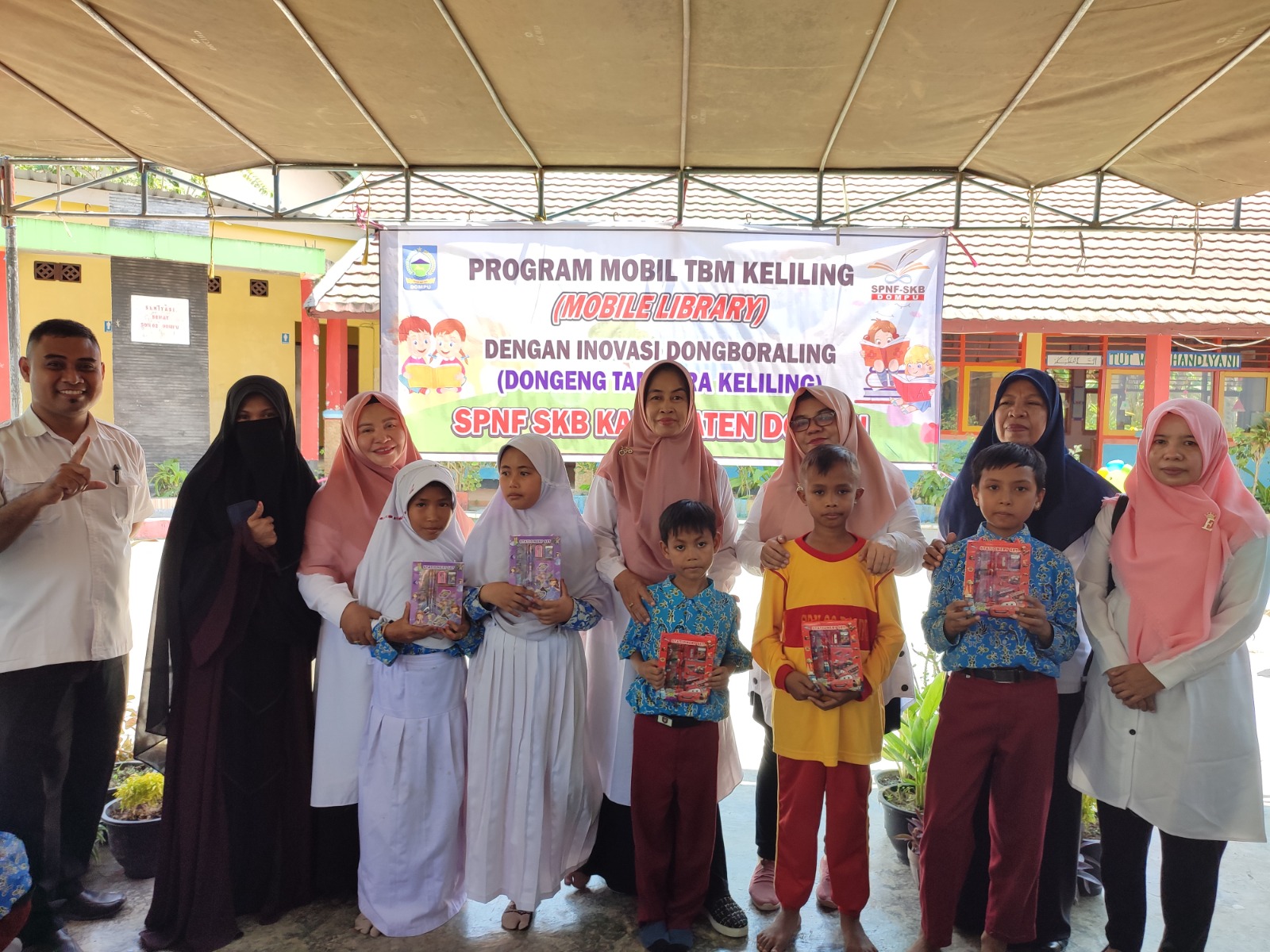 Pada Hari Rabu (11/10/2024), SPNF SKB Kabupaten Dompu melaksanakan layanan Dongeng Tambora Keliling (Dongboraling) di SD Negeri 03 Dompu. Pada kegiatan ini turut hadir Kepala Dinas Pendidikan Pemuda dan Olahraga Kabupaten Dompu, yakni Bapak Drs. H. Rifaid, M.Pd. yang sekaligus membuka kegiatan layanan Dongboraling. Adapun tamu undangan lainnya yang berhadir yaitu : Kasi Peserta Didik dan Pembangunan Karakter Dinas Dikpora Kabupaten Dompu, Kasi PTK PAUD & TK Dinas Dikpora Kabupaten Dompu, Kepala UPTD Dikpora Kecamatan Dompu, Pengawas SD Kecamatan Dompu, Penilik PAUD Kecamatan Dompu, Penilik PAUD Kecamatan Woja, dan Beserta tamu undangan lainnya.